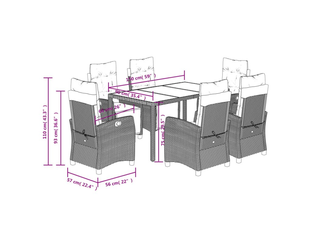 vidaXL 7-dielna záhradná jedálenská sada s podložkami sivá polyratan
