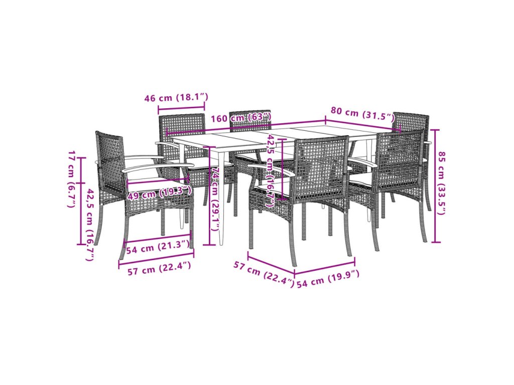 vidaXL 7-dielna záhradná jedálenská sada s podložkami sivá polyratan