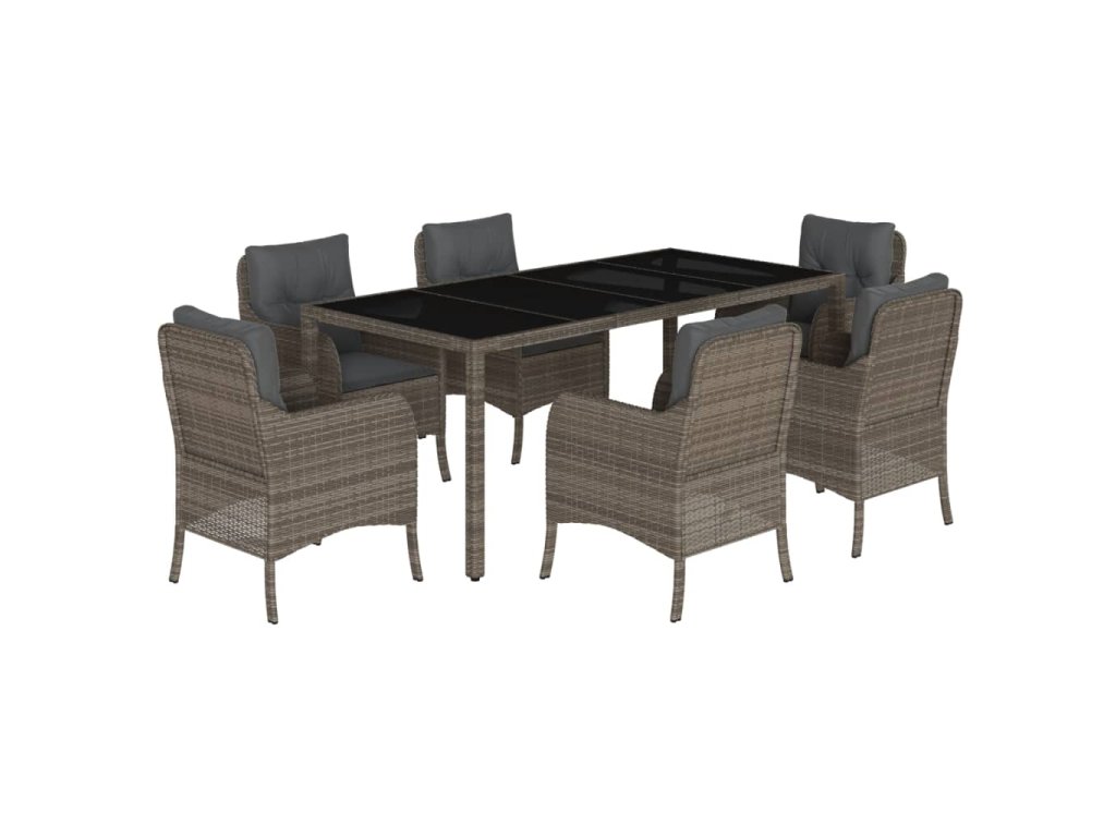 vidaXL 7-dielna záhradná jedálenská sada s podložkami sivá polyratan
