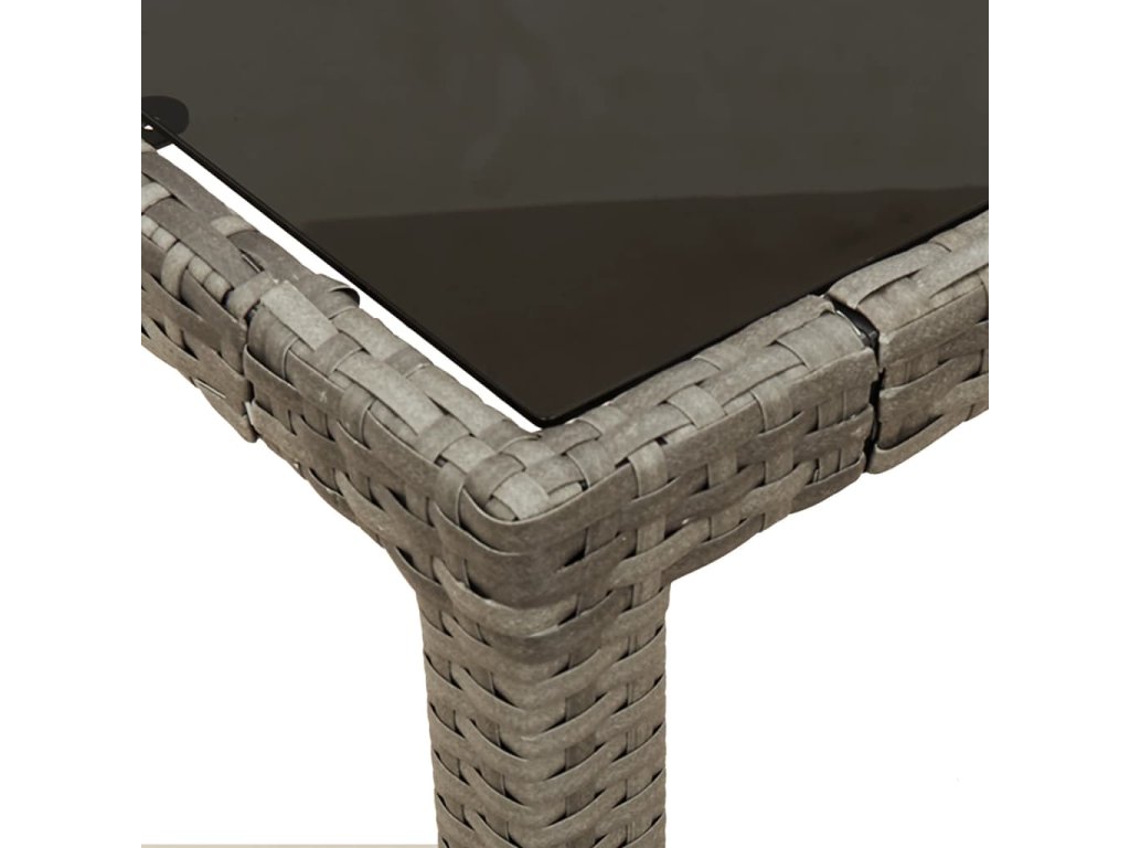 - Materiál: PE ratan, oceľ s práškovou povrchovou úpravou, tvrdené sklo