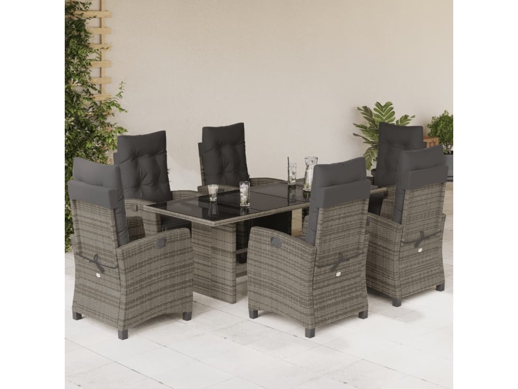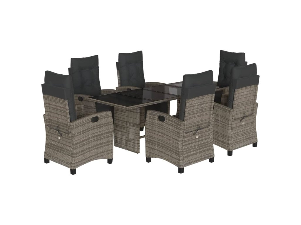 vidaXL 7-dielna záhradná jedálenská sada s podložkami sivá polyratan
