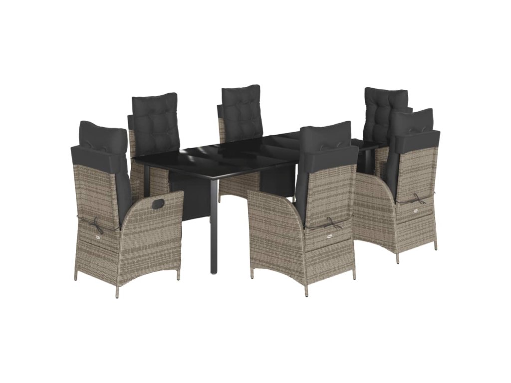 vidaXL 7-dielna záhradná jedálenská sada s podložkami sivá polyratan
