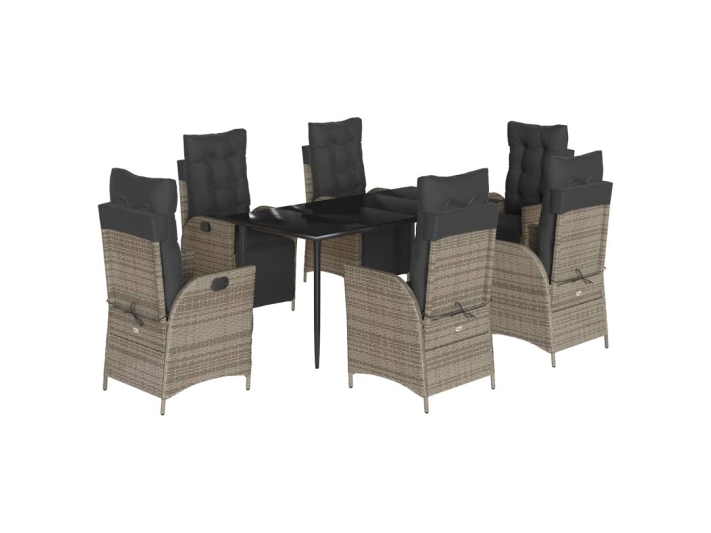 vidaXL 7-dielna záhradná jedálenská sada s podložkami sivá polyratan