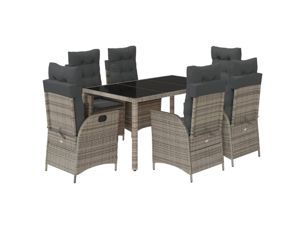 vidaXL 7-dielna záhradná jedálenská sada s podložkami sivá polyratan