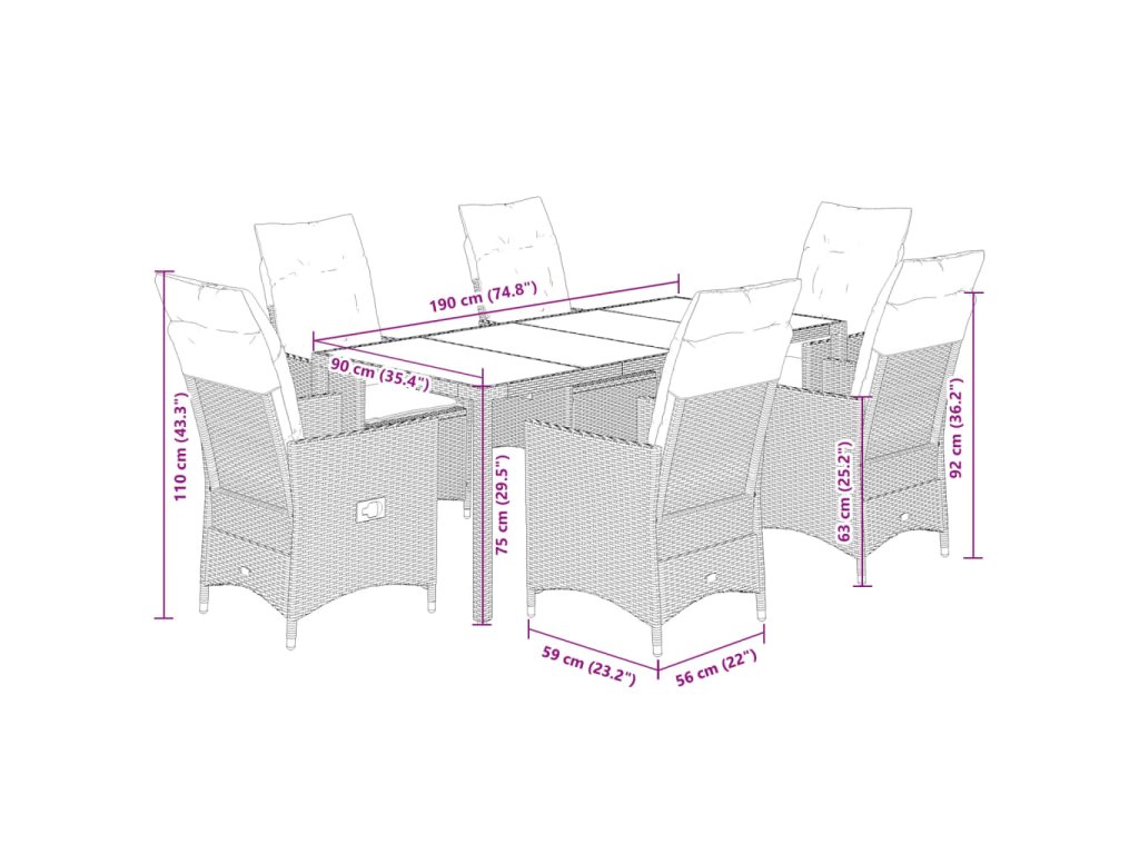 - Materiál: PE ratan, oceľ, masívne akáciové drevo s olejovým náterom