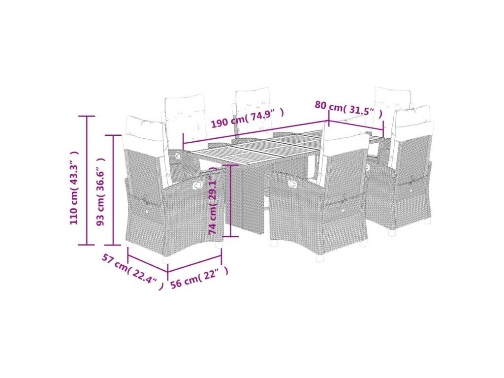 vidaXL 7-dielna záhradná jedálenská sada s podložkami sivá polyratan