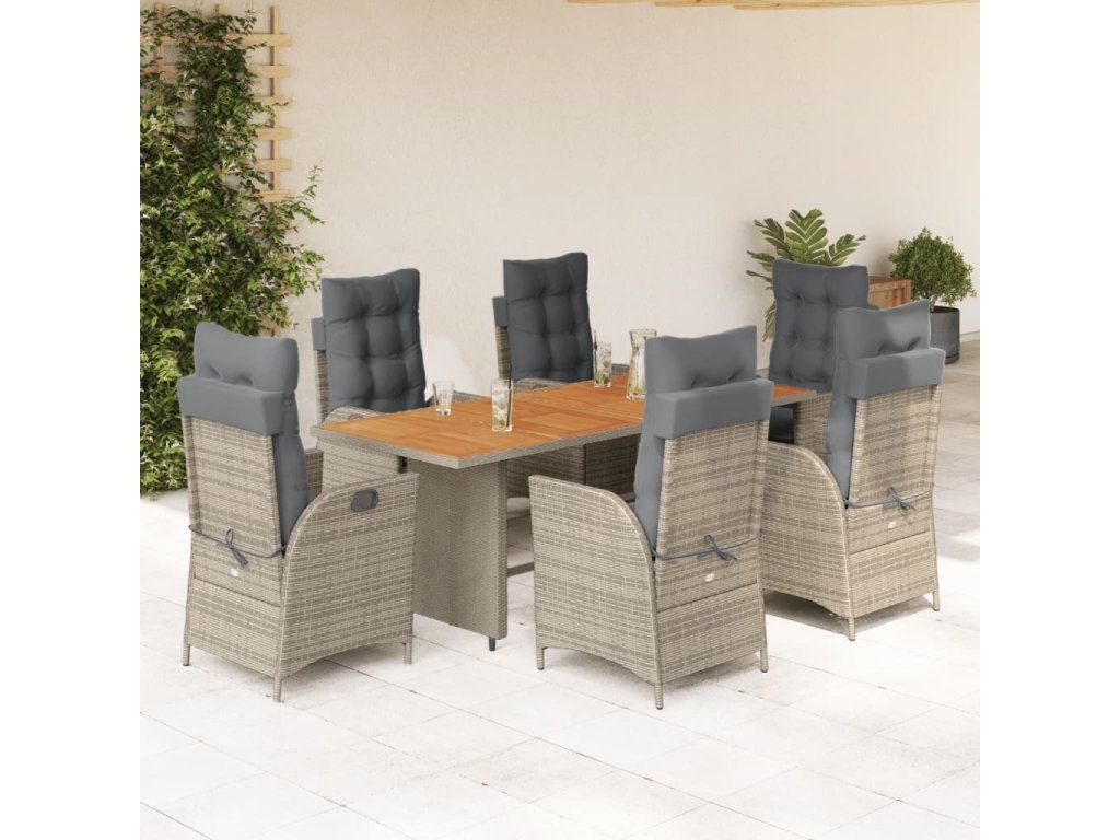 vidaXL 7-dielna záhradná jedálenská sada s podložkami sivá polyratan