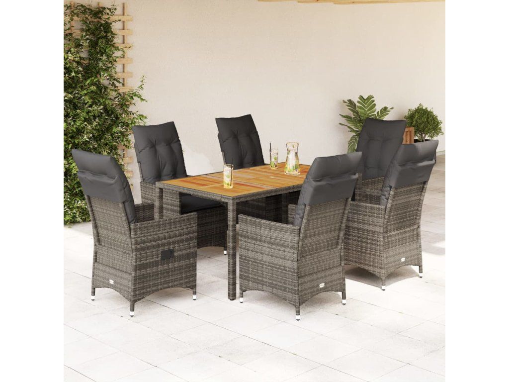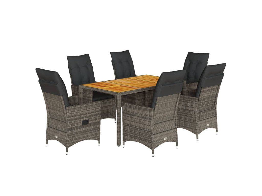 vidaXL 7-dielna záhradná jedálenská sada s podložkami sivá polyratan