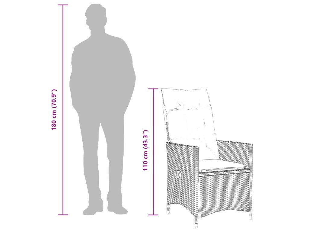 - Materiál: PE ratan, oceľ, masívne akáciové drevo s olejovým náterom