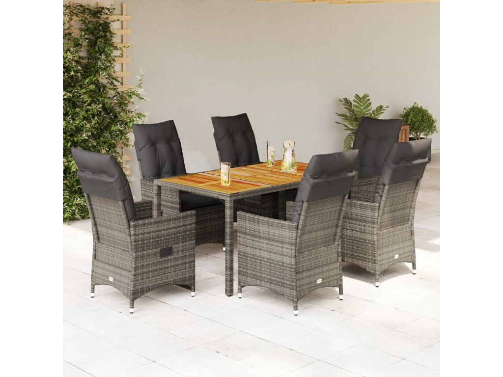 vidaXL 7-dielna záhradná jedálenská sada s podložkami sivá polyratan