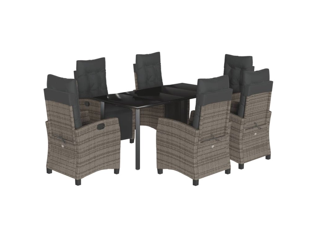 vidaXL 7-dielna záhradná jedálenská sada s podložkami sivá polyratan