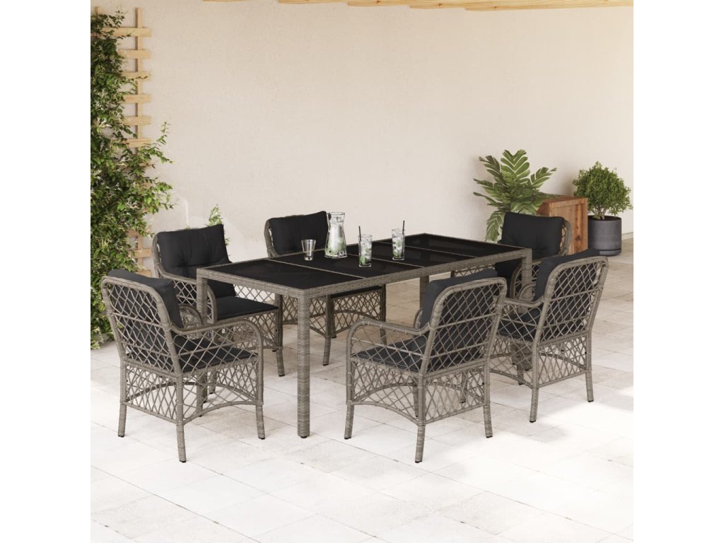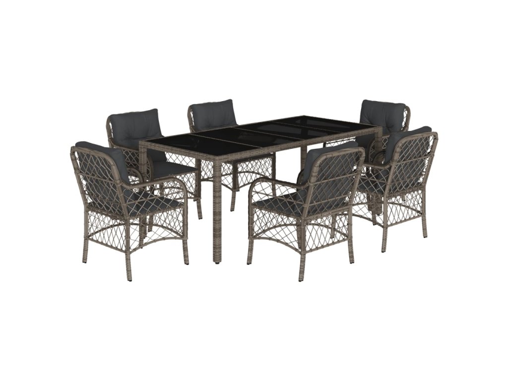 vidaXL 7-dielna záhradná jedálenská sada s podložkami sivá polyratan