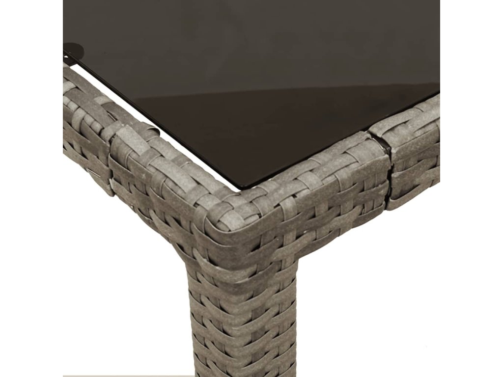 - Materiál: PE ratan, oceľ s práškovou povrchovou úpravou, tvrdené sklo