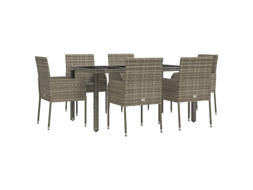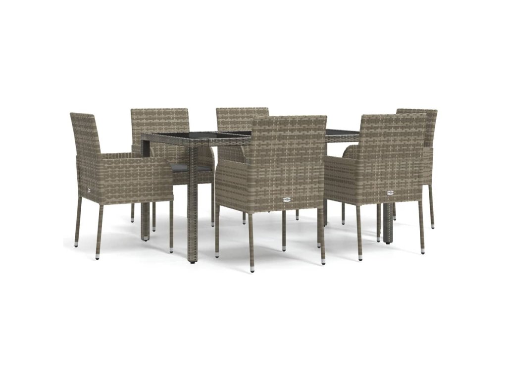 vidaXL 7-dielna záhradná jedálenská sada s podložkami sivá polyratan