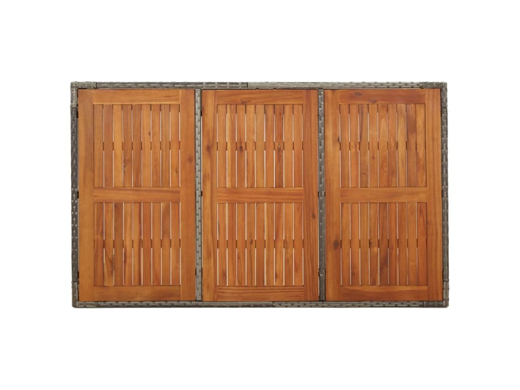 - Materiál: PE ratan, práškovaná oceľ, masívne akáciové drevo s olejovým náterom