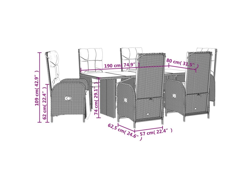 vidaXL 7-dielna záhradná jedálenská sada s podložkami sivá polyratan