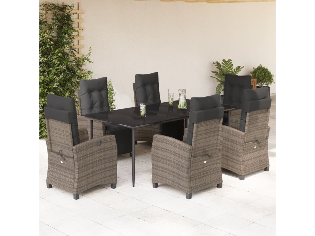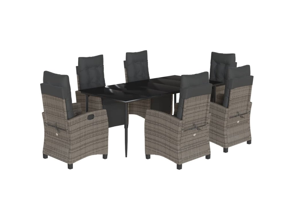 vidaXL 7-dielna záhradná jedálenská sada s podložkami sivá polyratan