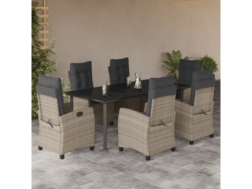 vidaXL 7-dielna záhradná jedálenská sada vankúše bledosivá polyratan