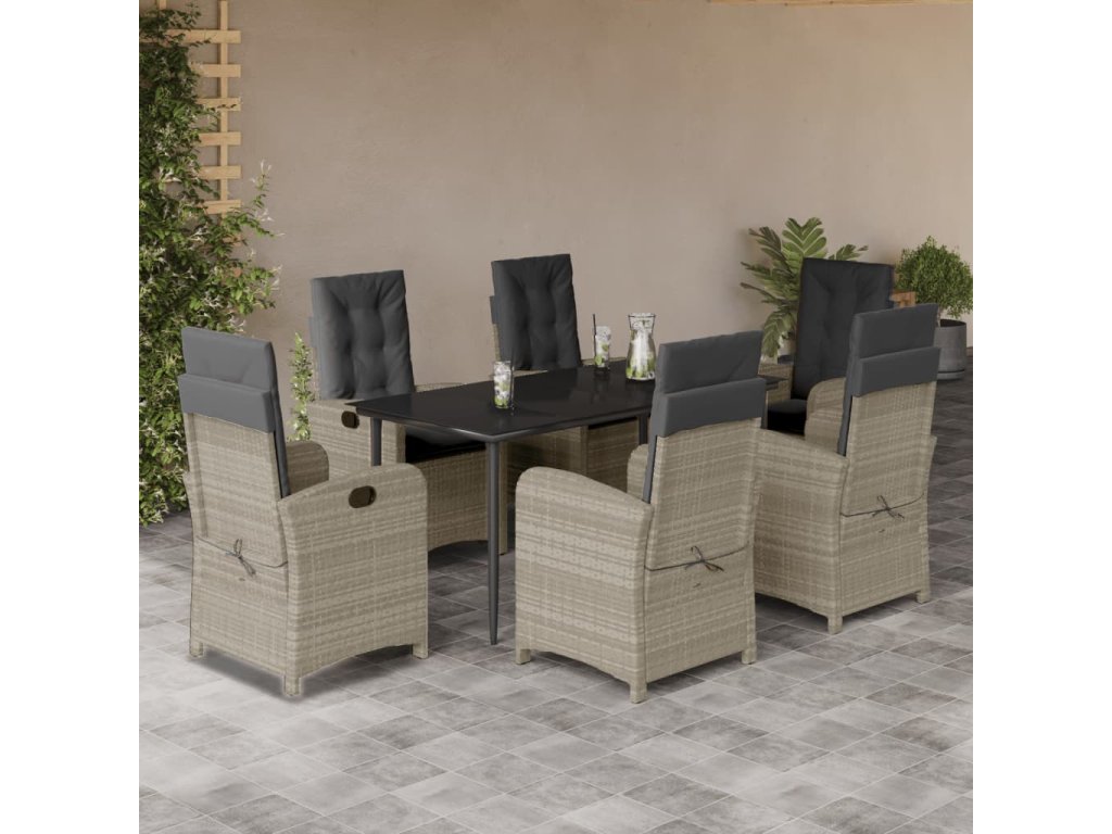 vidaXL 7-dielna záhradná jedálenská sada vankúše bledosivá polyratan