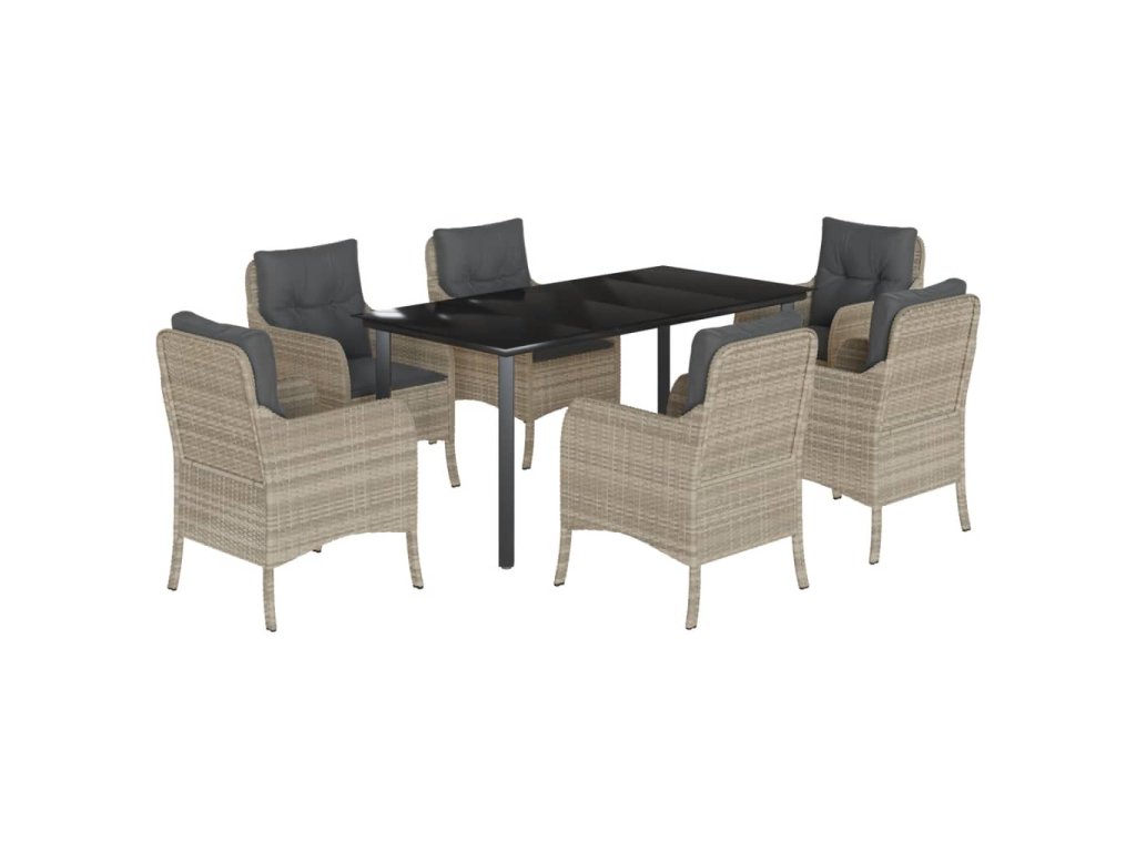 vidaXL 7-dielna záhradná jedálenská sada vankúše bledosivá polyratan