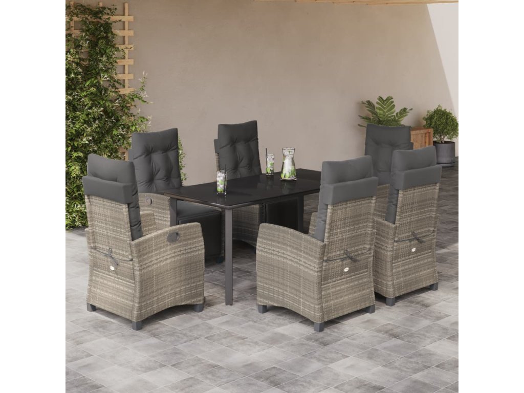 vidaXL 7-dielna záhradná jedálenská sada vankúše bledosivá polyratan