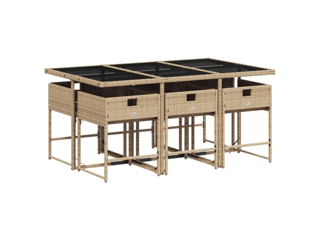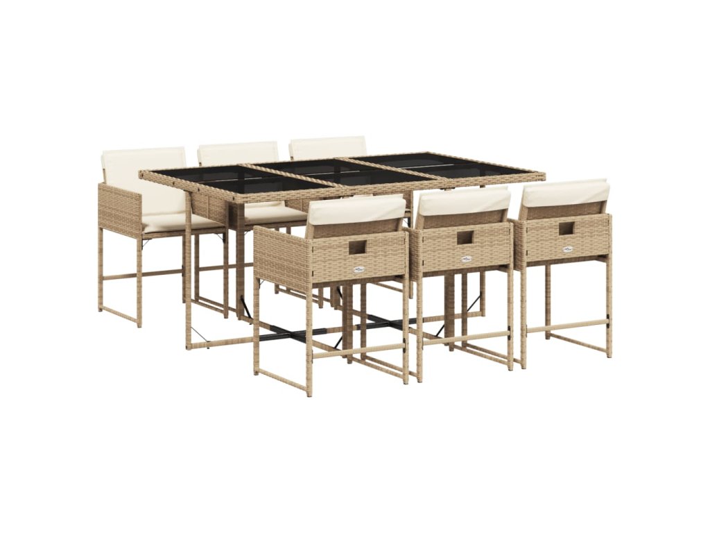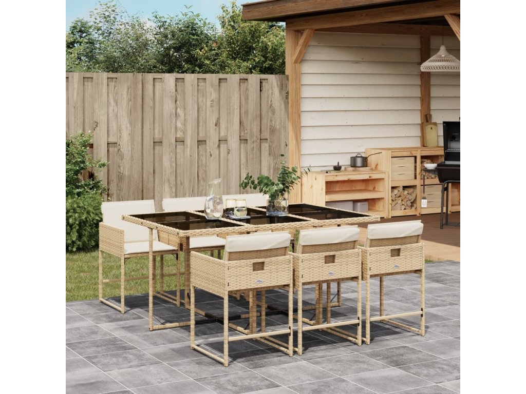 vidaXL 7-dielna záhradná jedálenská súprava a vankúše béžová polyratan