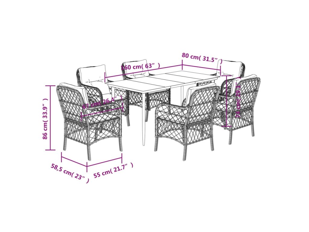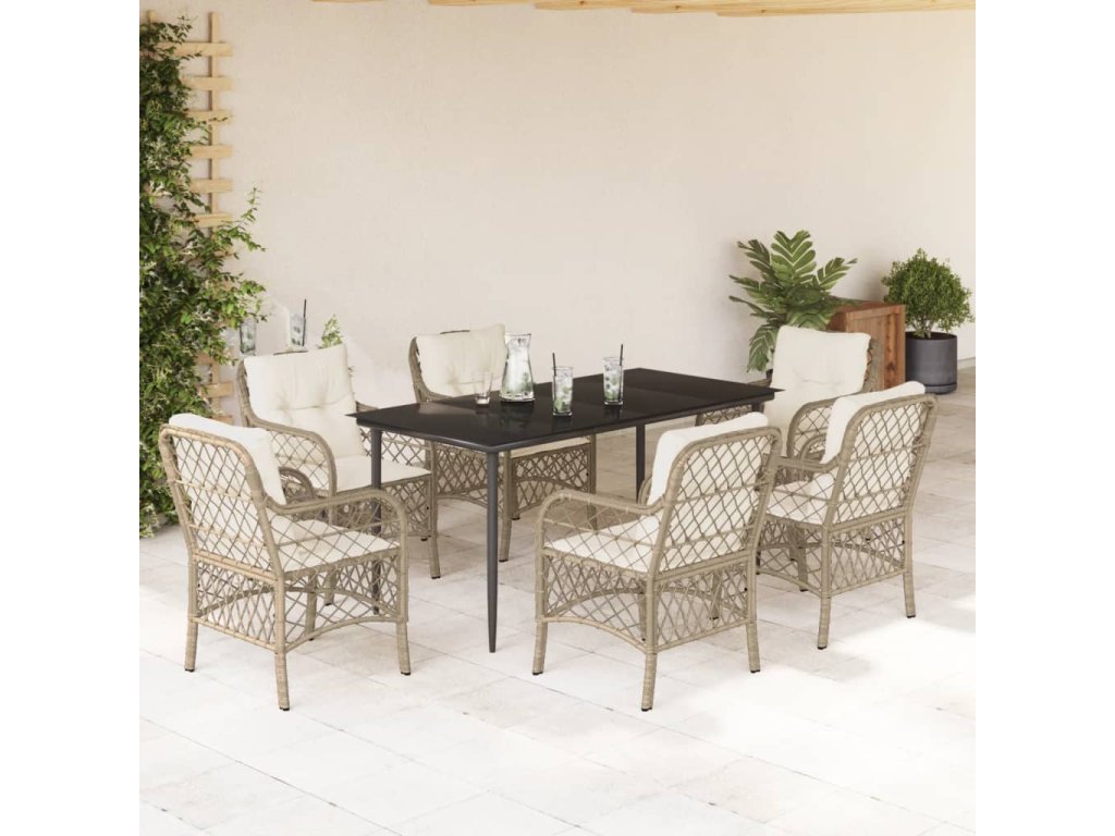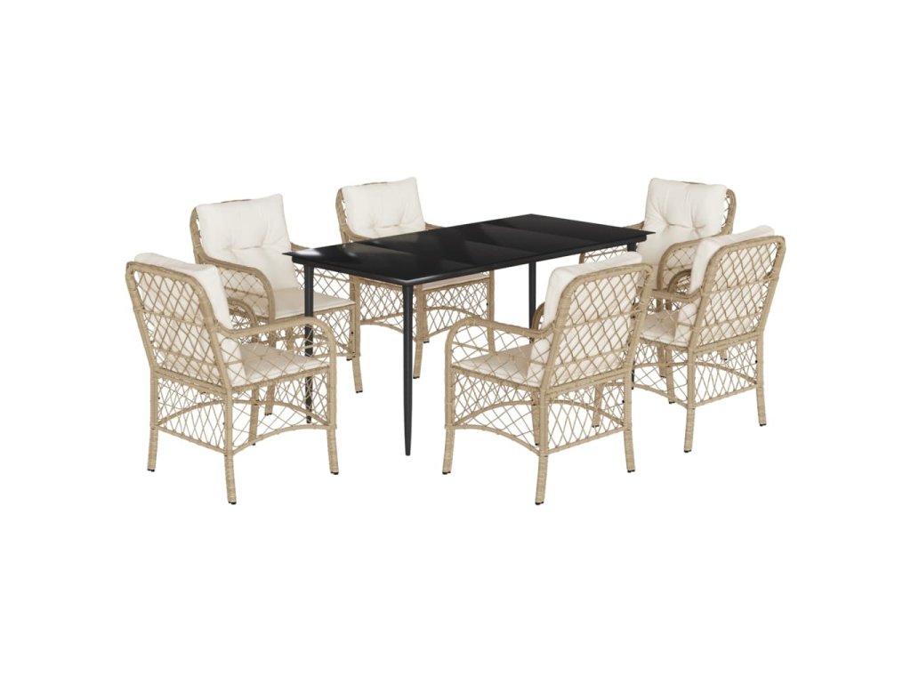 vidaXL 7-dielna záhradná jedálenská súprava a vankúše béžová polyratan