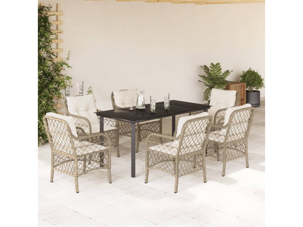 vidaXL 7-dielna záhradná jedálenská súprava a vankúše béžová polyratan