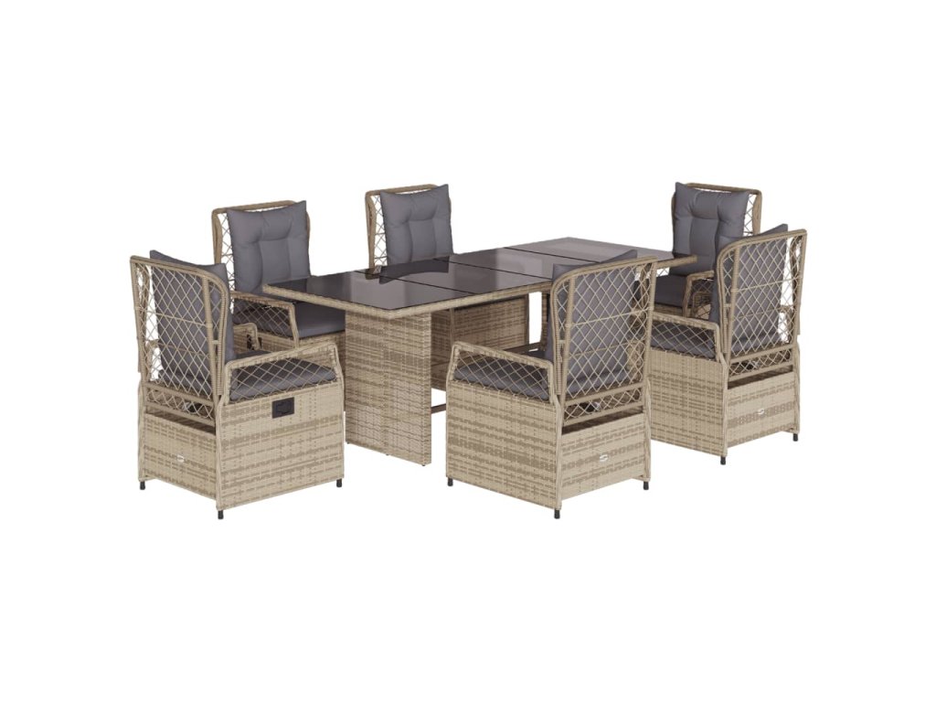 vidaXL 7-dielna záhradná jedálenská súprava a vankúše béžová polyratan