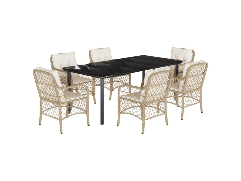 vidaXL 7-dielna záhradná jedálenská súprava a vankúše béžová polyratan
