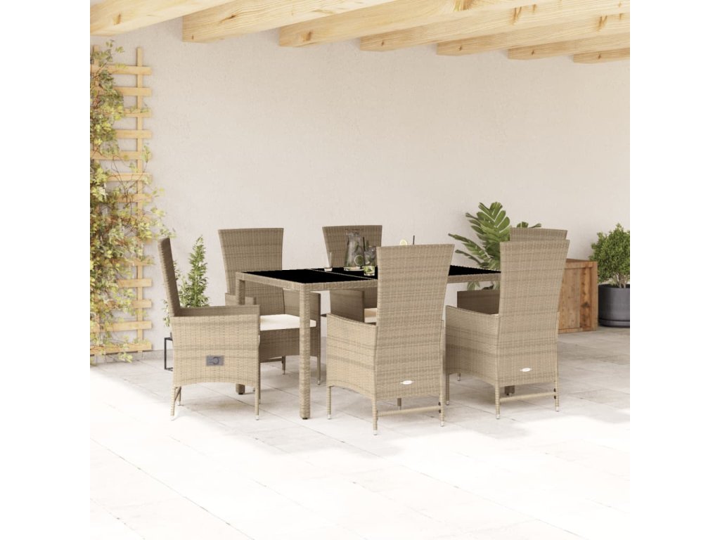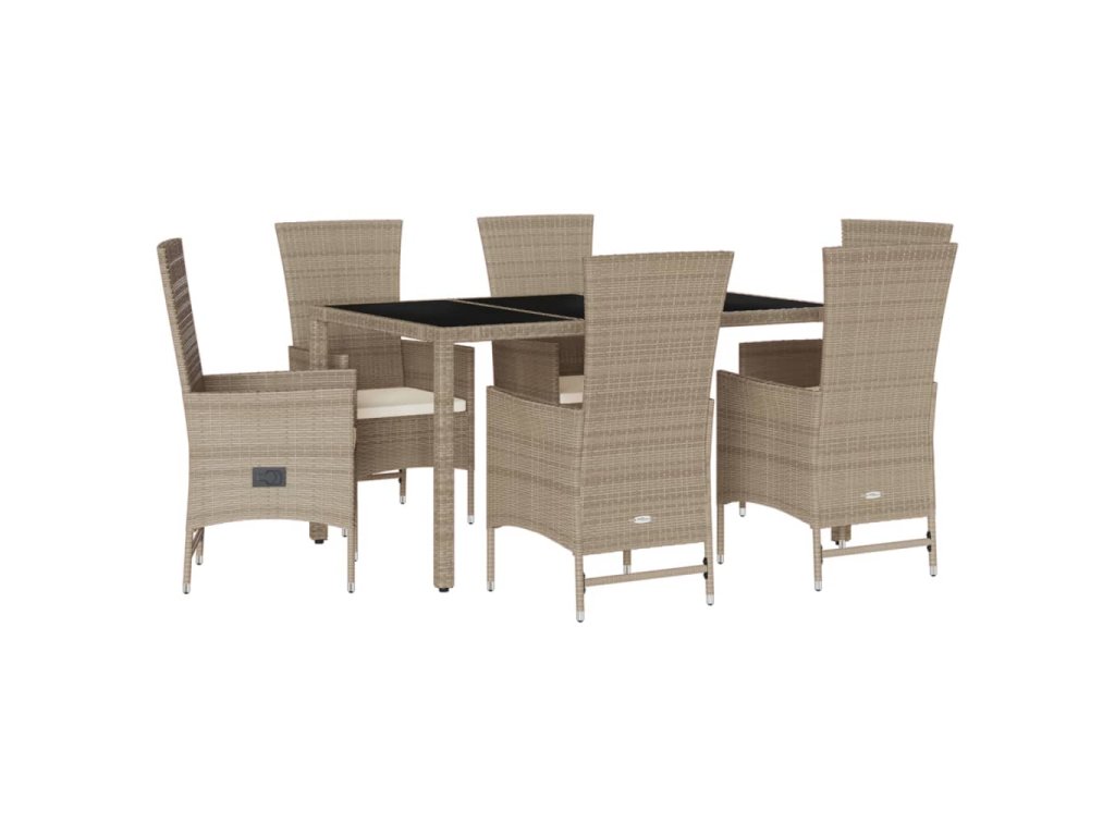 vidaXL 7-dielna záhradná jedálenská súprava a vankúše béžová polyratan