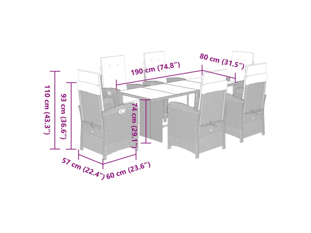- Rozmery: 190 x 80 x 74 cm (D x Š x V)