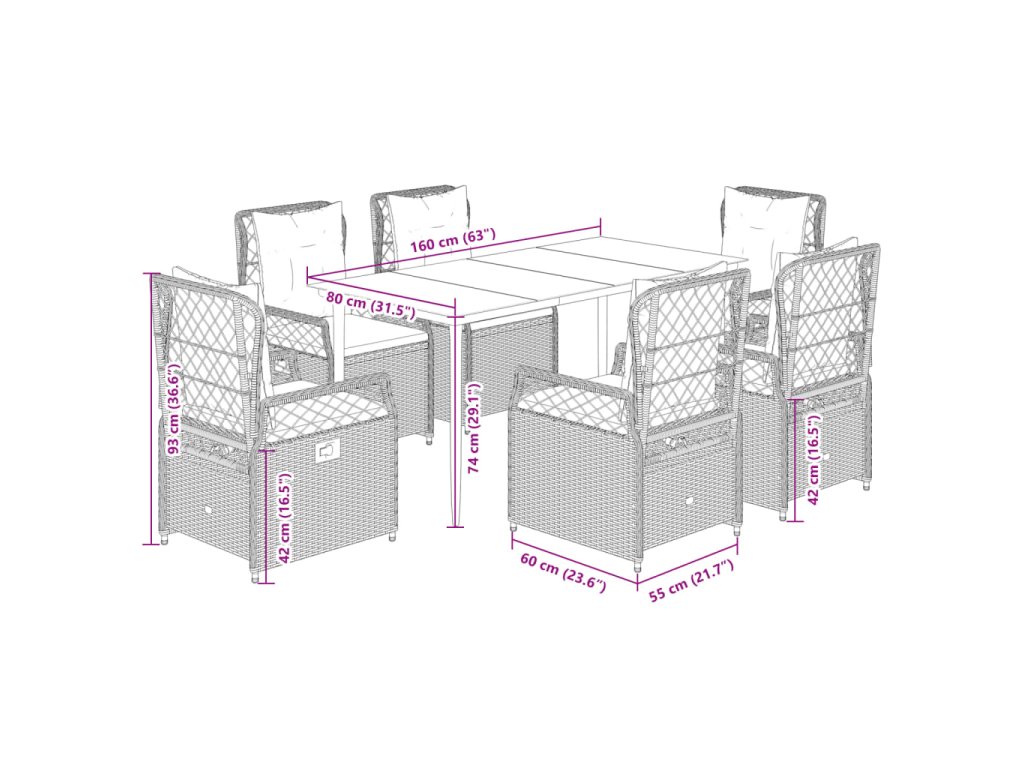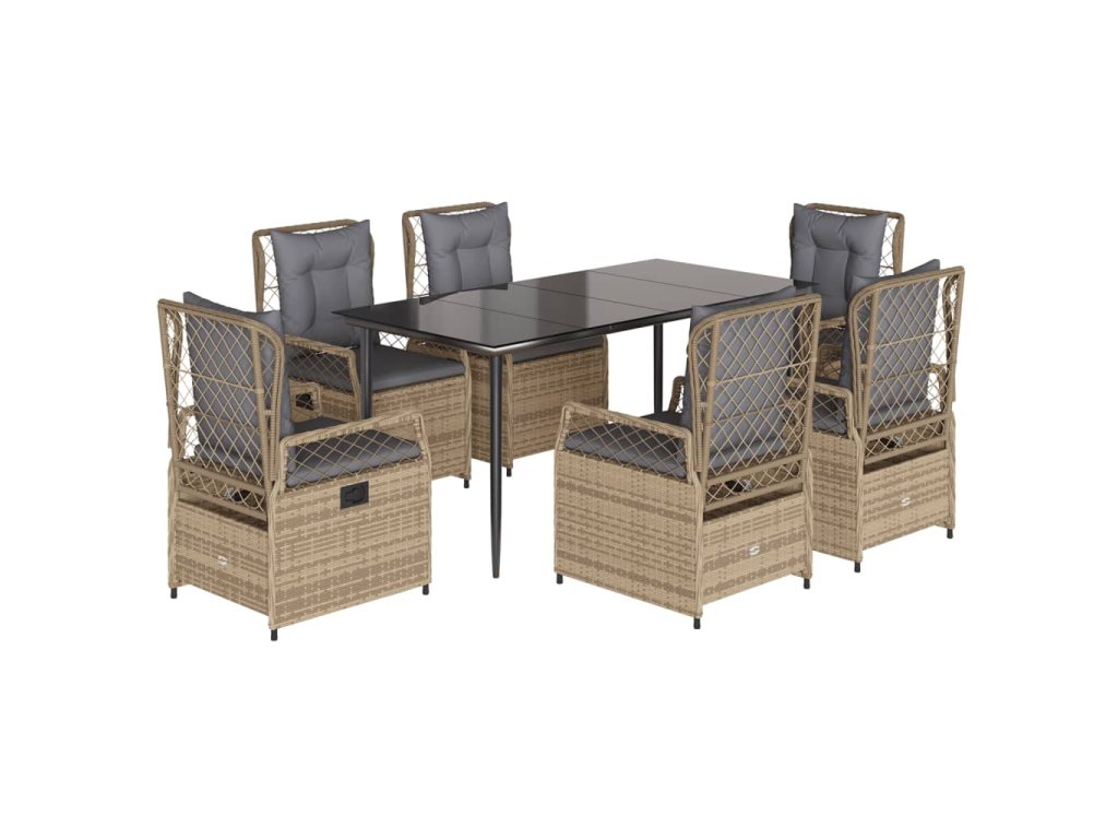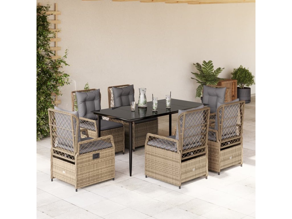 vidaXL 7-dielna záhradná jedálenská súprava a vankúše béžová polyratan