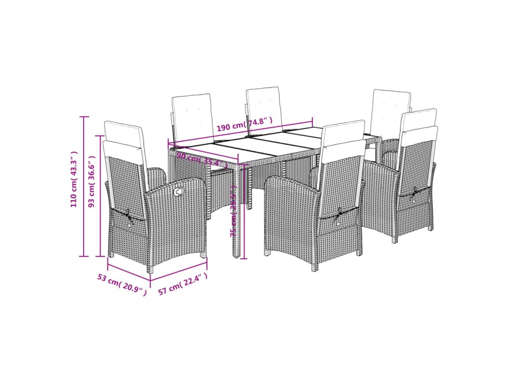 vidaXL 7-dielna záhradná jedálenská súprava a vankúše čierna polyratan