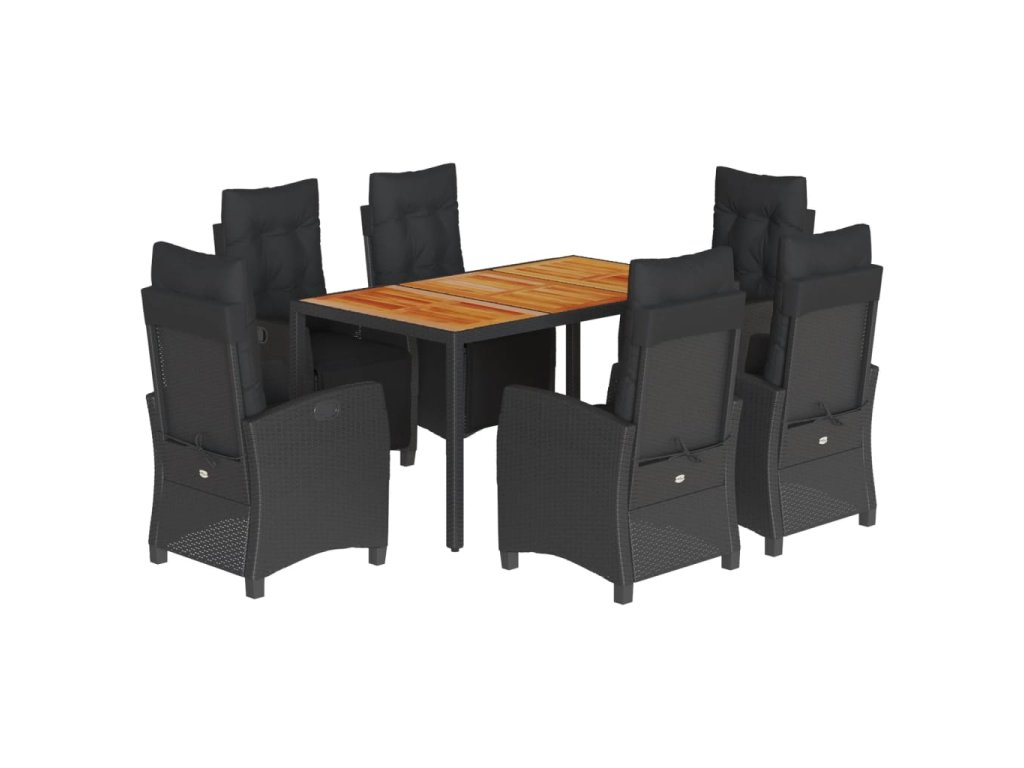 vidaXL 7-dielna záhradná jedálenská súprava a vankúše čierna polyratan