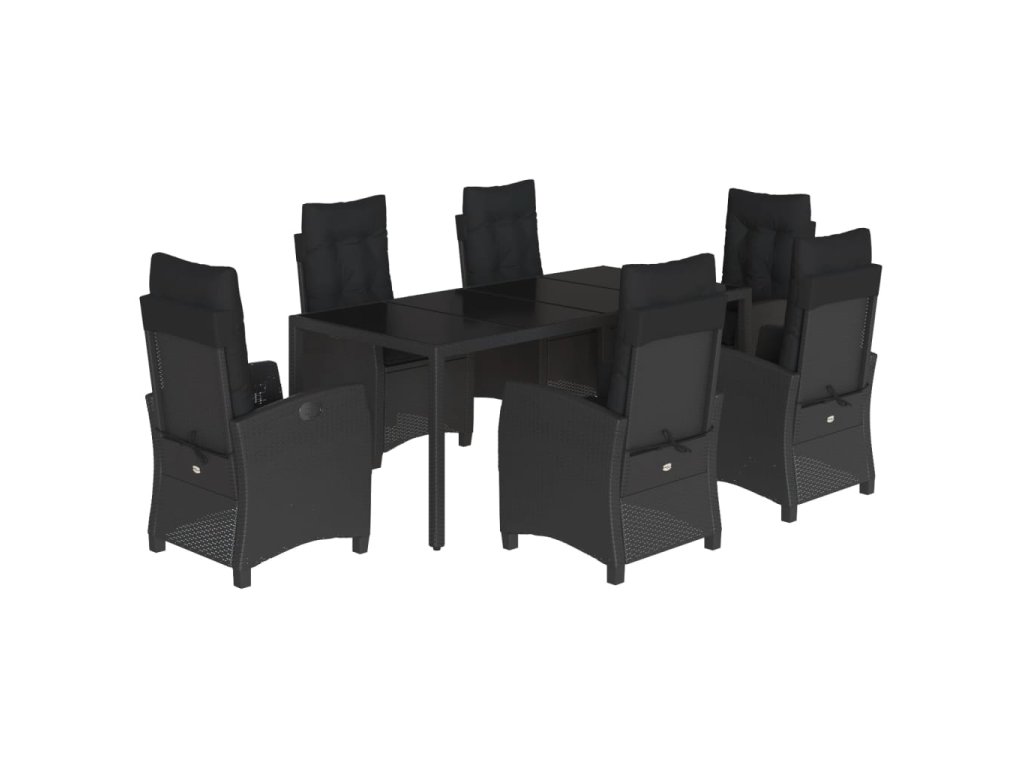 vidaXL 7-dielna záhradná jedálenská súprava a vankúše čierna polyratan