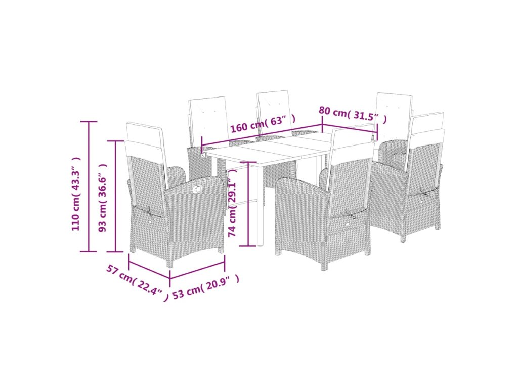- Materiál: PE ratan, oceľ s práškovou povrchovou úpravou, tvrdené sklo