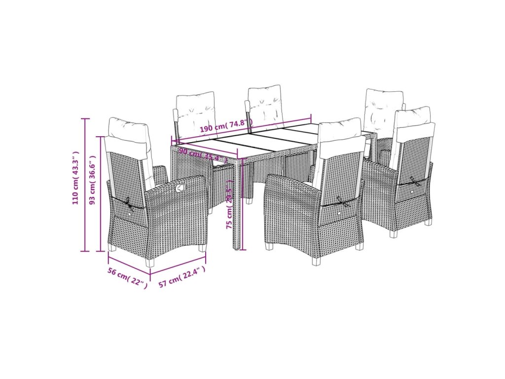 vidaXL 7-dielna záhradná jedálenská súprava a vankúše čierna polyratan