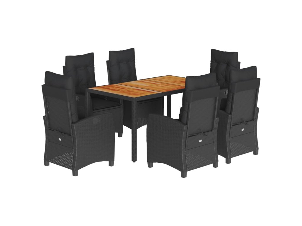 vidaXL 7-dielna záhradná jedálenská súprava a vankúše čierna polyratan