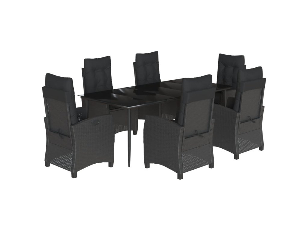 vidaXL 7-dielna záhradná jedálenská súprava a vankúše čierna polyratan