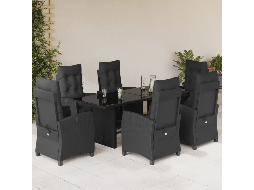 vidaXL 7-dielna záhradná jedálenská súprava a vankúše čierna polyratan