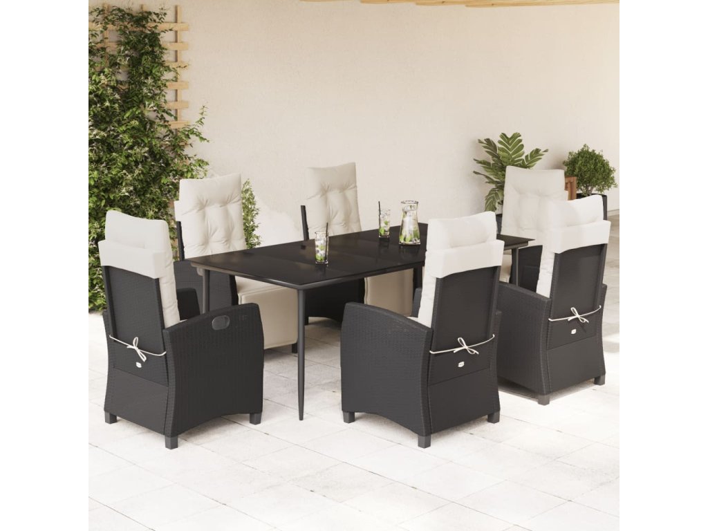 vidaXL 7-dielna záhradná jedálenská súprava a vankúše čierna polyratan