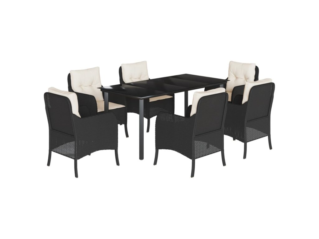 vidaXL 7-dielna záhradná jedálenská súprava a vankúše čierna polyratan
