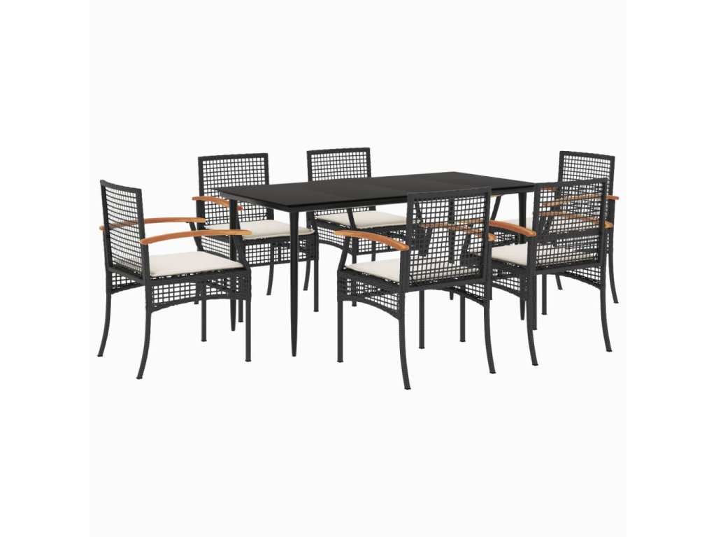 vidaXL 7-dielna záhradná jedálenská súprava a vankúše čierna polyratan