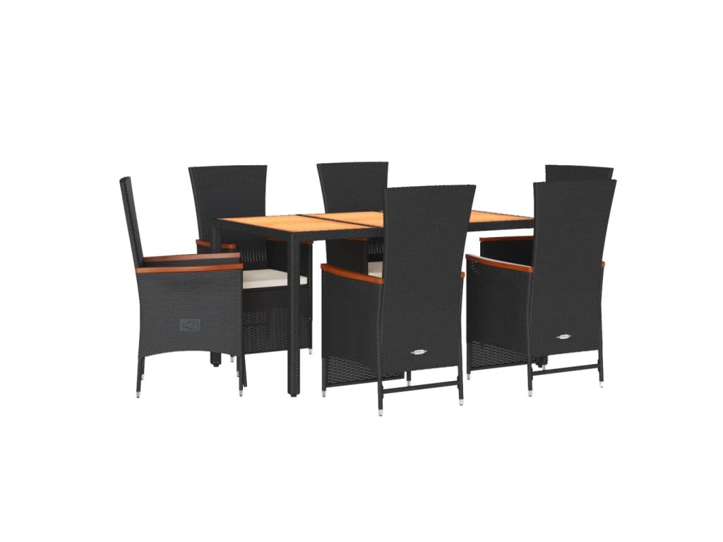 vidaXL 7-dielna záhradná jedálenská súprava a vankúše čierna polyratan