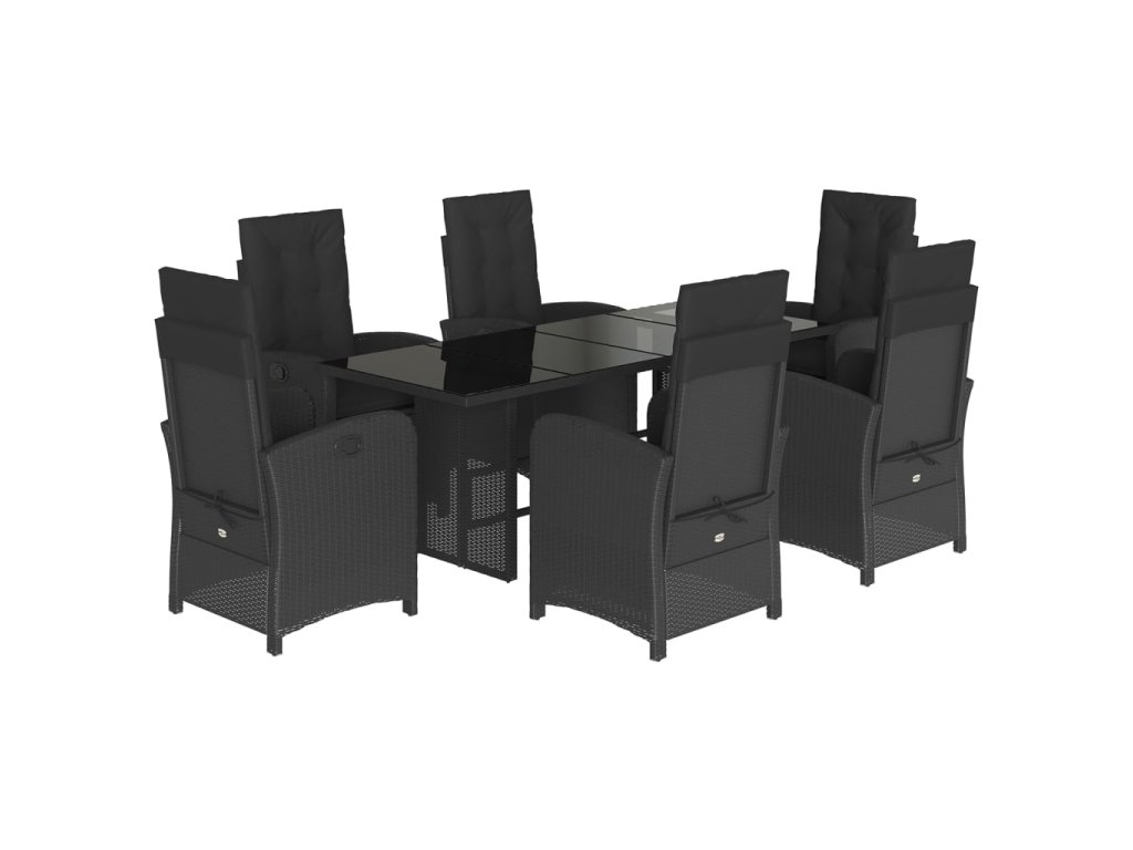 vidaXL 7-dielna záhradná jedálenská súprava a vankúše čierna polyratan
