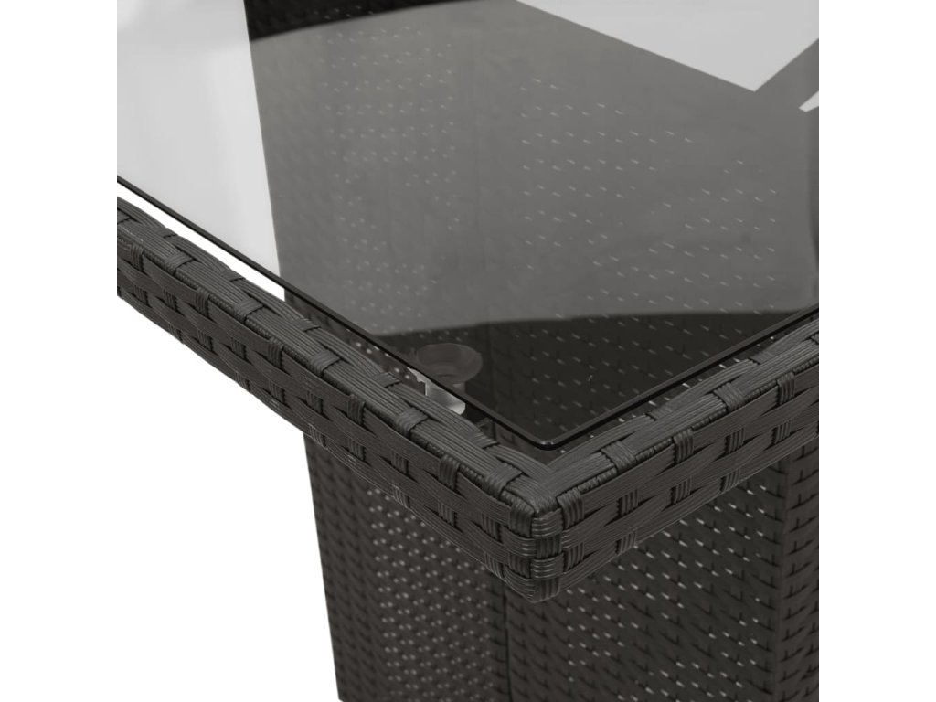 - Materiál: PE ratan, oceľ s práškovou povrchovou úpravou, tvrdené sklo