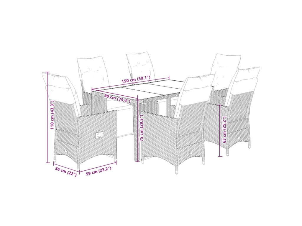 - Materiál: PE ratan, oceľ, tvrdené sklo