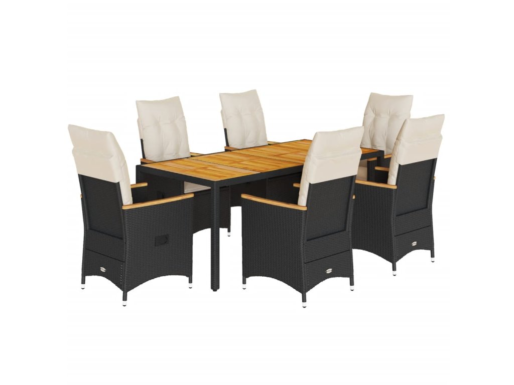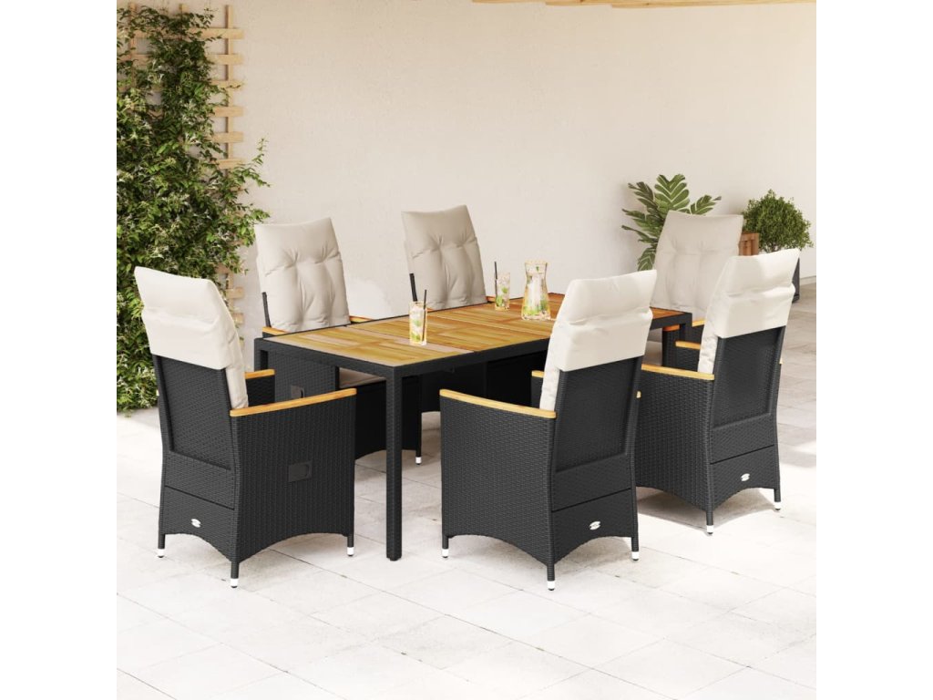 vidaXL 7-dielna záhradná jedálenská súprava a vankúše čierna polyratan