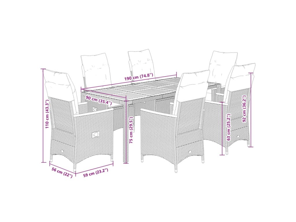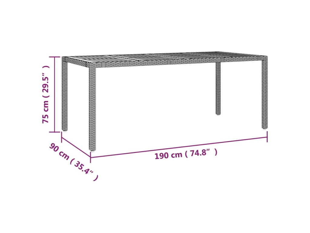 - Materiál: PE ratan, oceľ, masívne akáciové drevo s olejovým náterom
